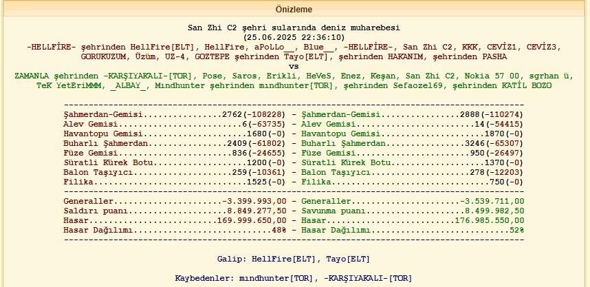 Uzun zamandır ben böyle bir durum olduğunu hatırlamıyorum. İkariam tarihinin tek bir cephede görülen en yüksek kesim farkı bu olabilir. Daha fazlasını gören varsa hatırlatsın da bilelim 😄
